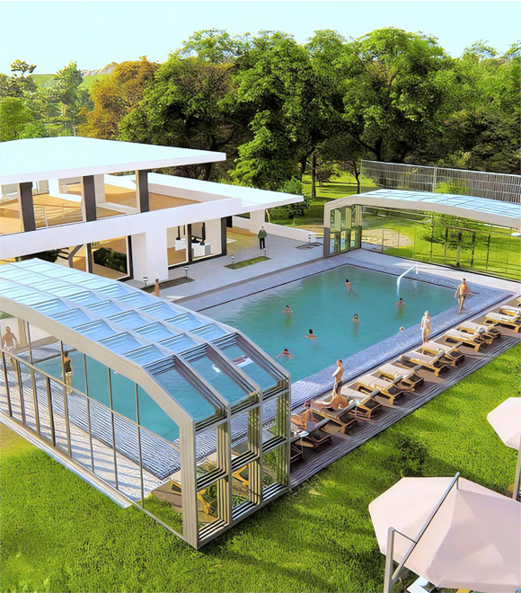 Permanently glass-enclosed, year-round constant temperature, usable in all seasons.